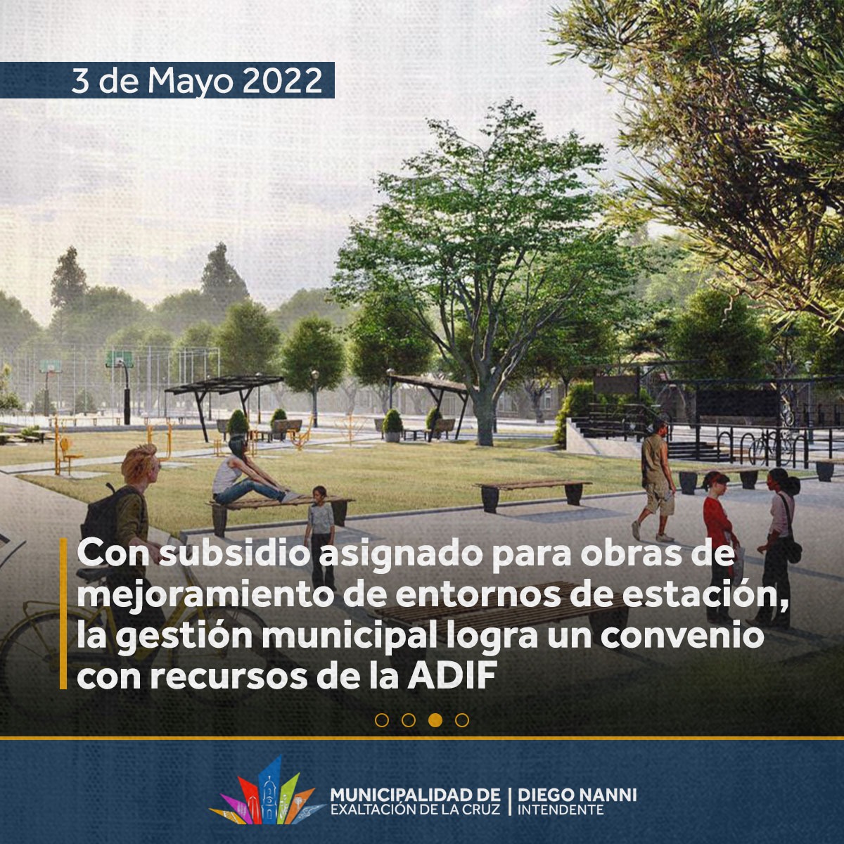 “Al finalizar, el espacio contará con un anfiteatro, un skatepark, una zona para la lectura y descanso con mesas y bancos, un área de juegos para niños, un playón multipropósito para el desarrollo de distintas actividades deportivas, y mesas de fútbol-tenis”, expresó Diego Nanni, para concluir “agradecemos por este proyecto a Martín Marinucci, presidente de Trenes Argentinos, por sumar una nueva iniciativa para Exaltación de la Cruz, sumándose a la puesta en valor de Estaciones, el reemplazo de vías y la vuelta del tren a Diego Gaynor que está cerca de concluirse”.