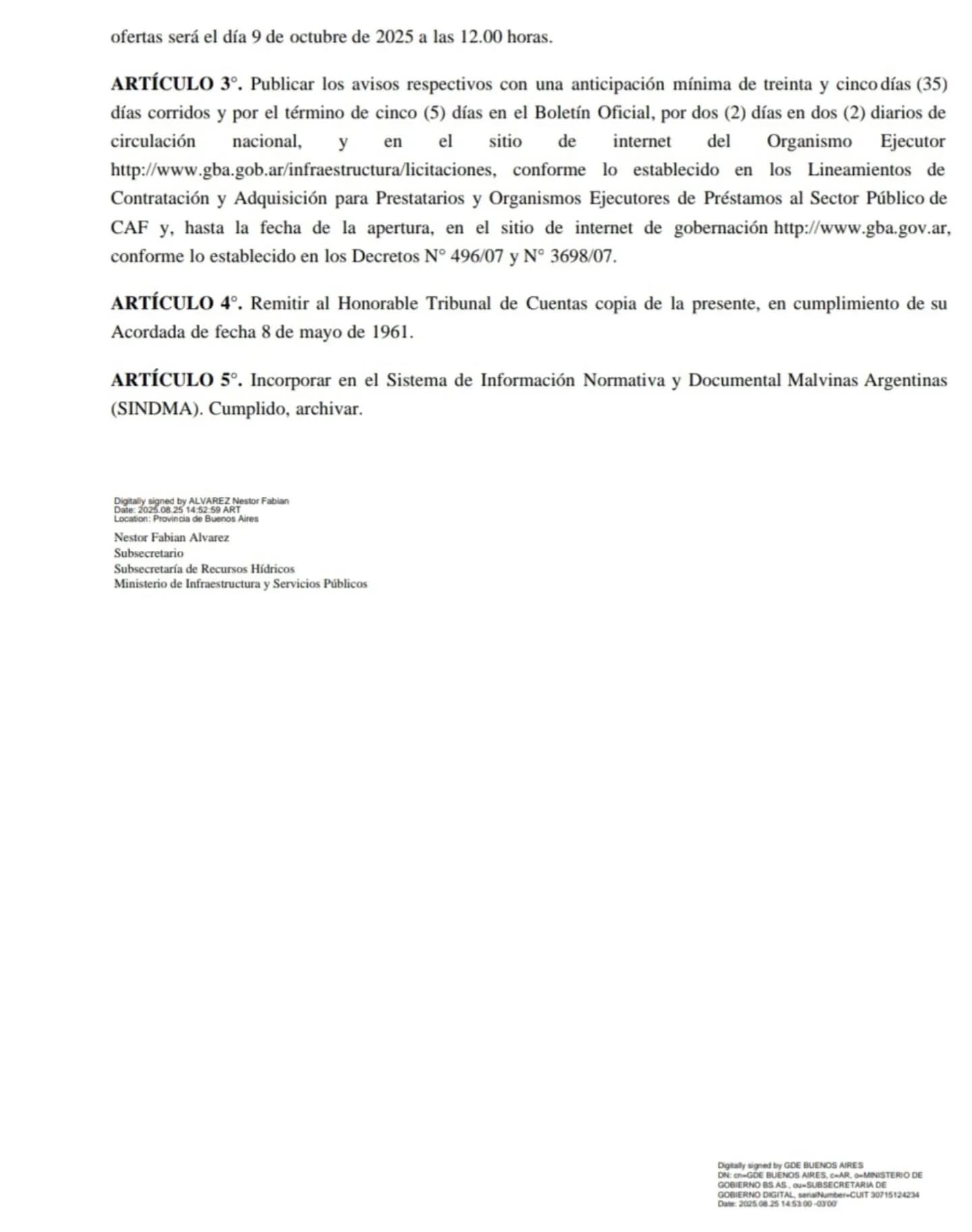 La fecha límite para la recepción de ofertas es el 9 de octubre, a las 11:30 hs. Día en que también se realizará la apertura de sobres. La obra tendrá un plazo de ejecución de 730 días.