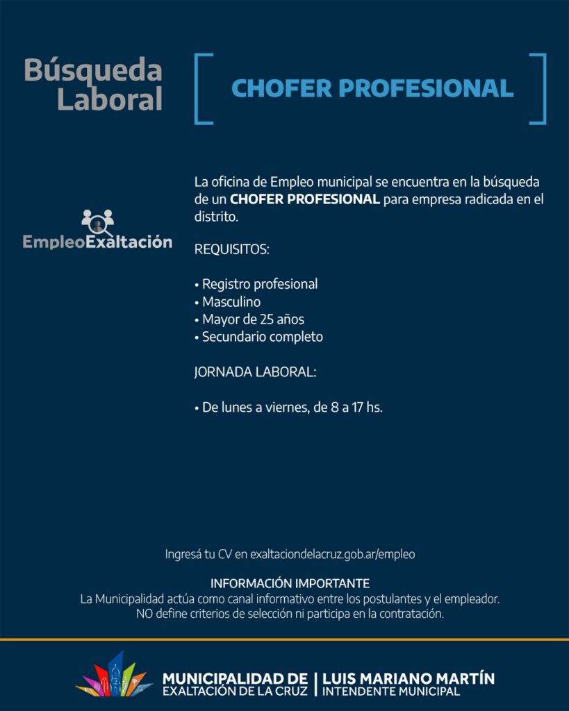 CHOFER PROFESIONAL 0 Macarena Fioretto 21, Ene, 2026 Compartir Categoria: Presencial Tipo de trabajo: Full Time Lugar: Pavón Solicitar este puesto Nombre completo *Correo electrónico *Teléfono *Carta de presentación *Subir el currículum *Tipo(s) permitido(s): .pdf, .doc, .docxAl utilizar este formulario, usted acepta el almacenamiento y manejo de sus datos por parte de este sitio web. *