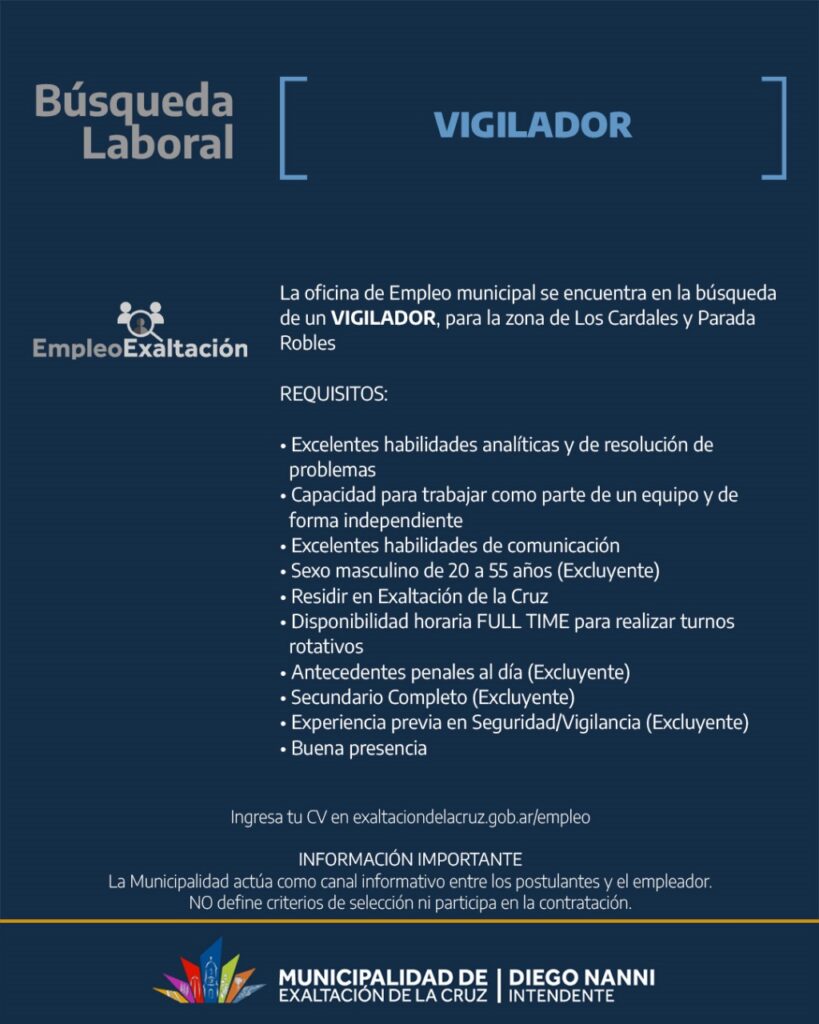 VIGILADOR 0 Macarena Fioretto 27, Nov, 2025 Compartir Solicitar este puesto Nombre completo *Correo electrónico *Teléfono *Carta de presentación *Subir el currículum *Tipo(s) permitido(s): .pdf, .doc, .docxAl utilizar este formulario, usted acepta el almacenamiento y manejo de sus datos por parte de este sitio web. *